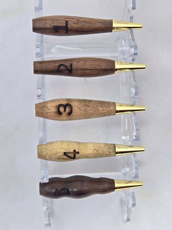 Wood descriptions can be found on the portfolio page. See lists below for the woods that are available in Basic, Premium, and Elite. Be sure to include your choice in the message board below, or choose assorted woods of our choice to have a varied selection of woods formed into one pen.