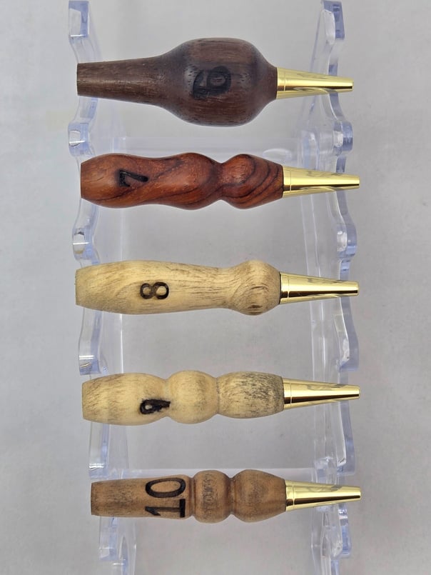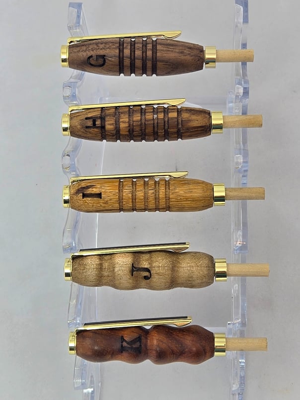 Time to choose the wood and hardware and style for your pen. Please add your choices in the message board below and submit before continuing with your purchase. You may choose different woods for upper and lower barrel if you wish, or keep it simple with one wood, the grain continuous between pieces. If you choose an upper or lower barrel in Premium or Elite, you must choose that price option above for the cost of the pen.